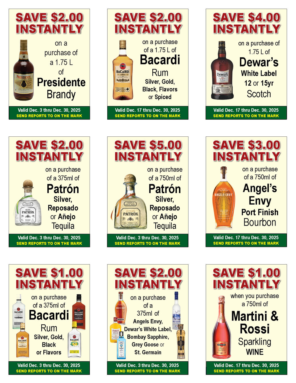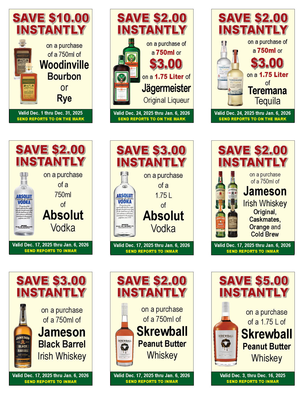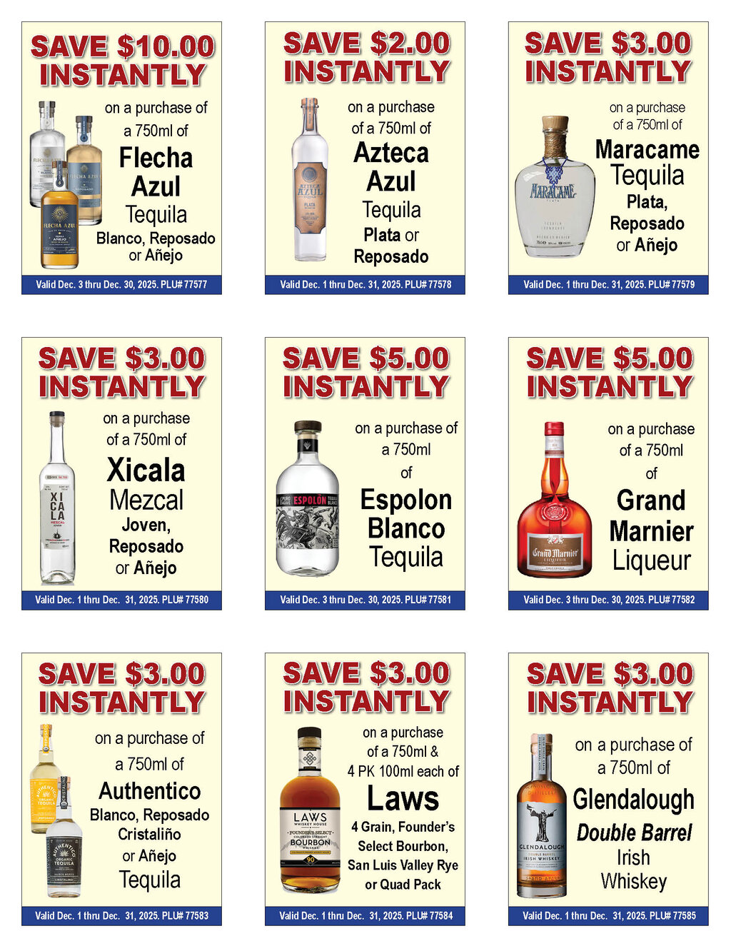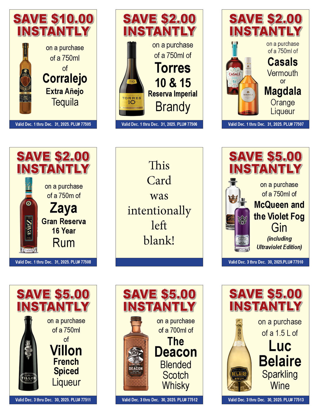 --See below for brand specifics and dates--