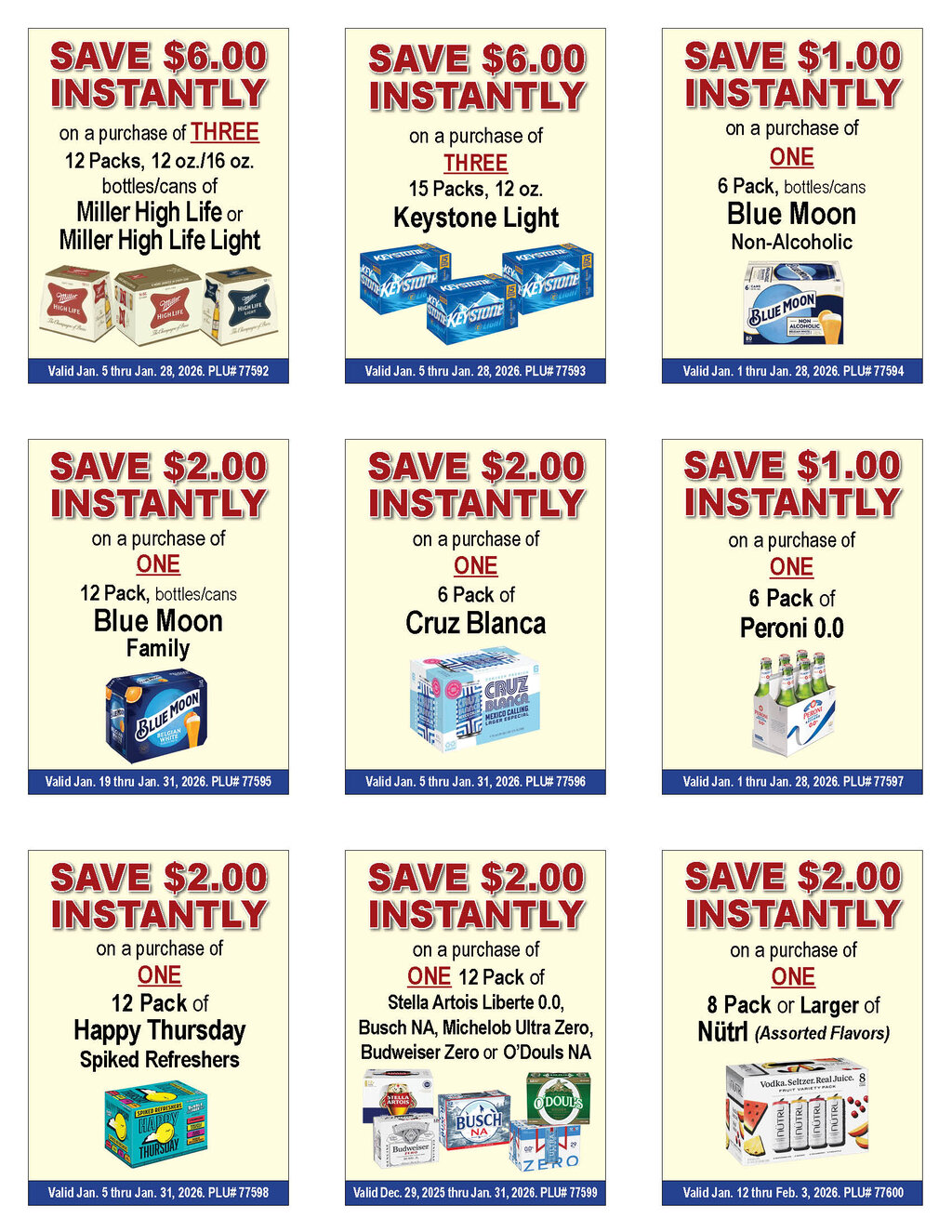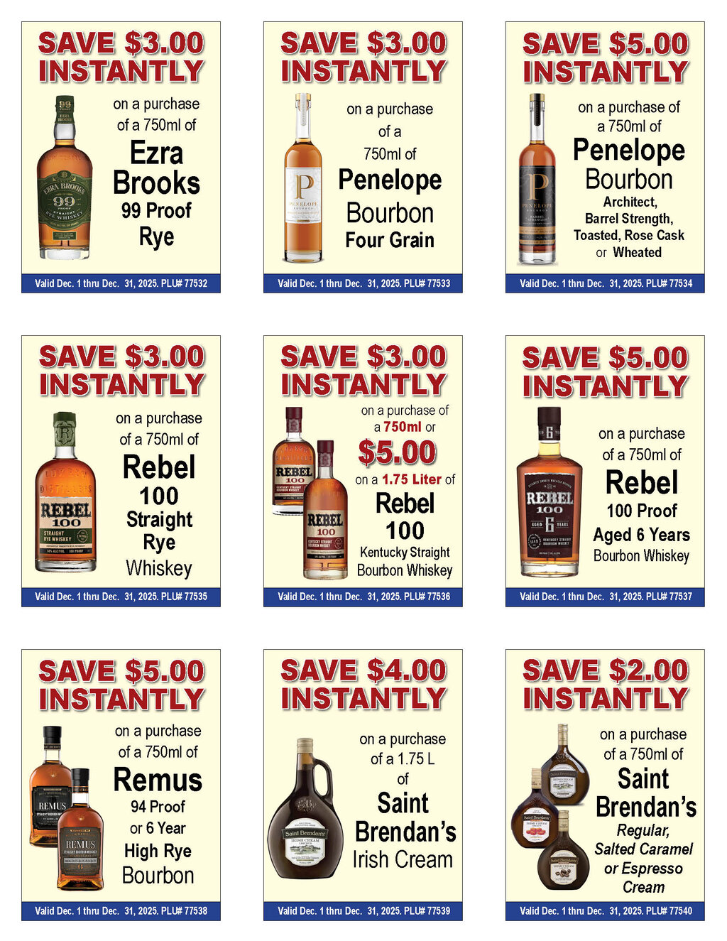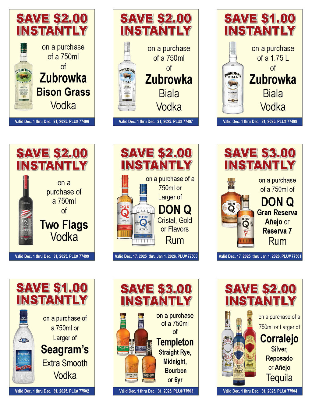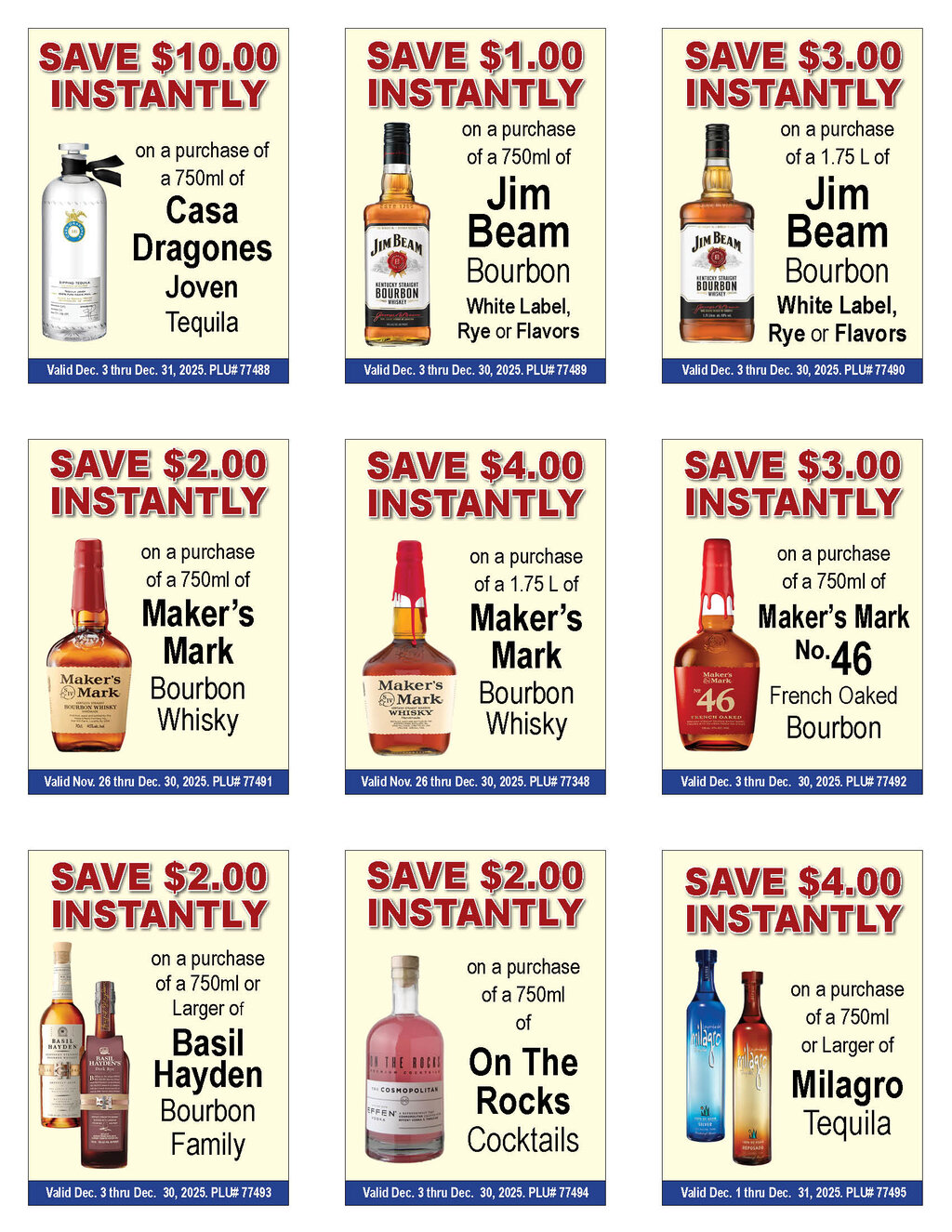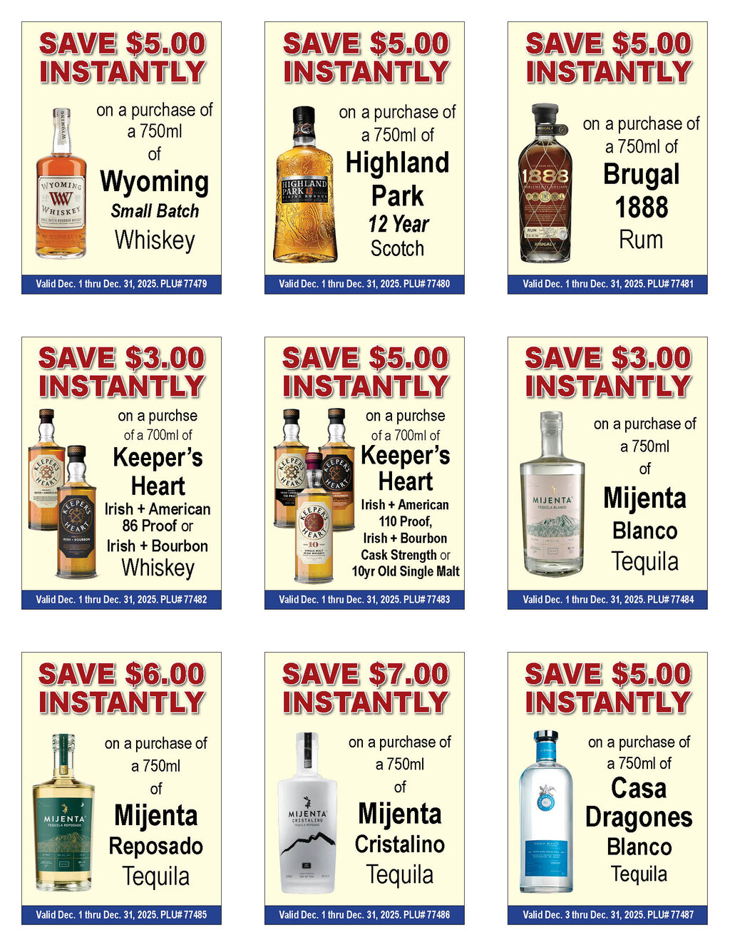 --See below for brand specifics and dates--