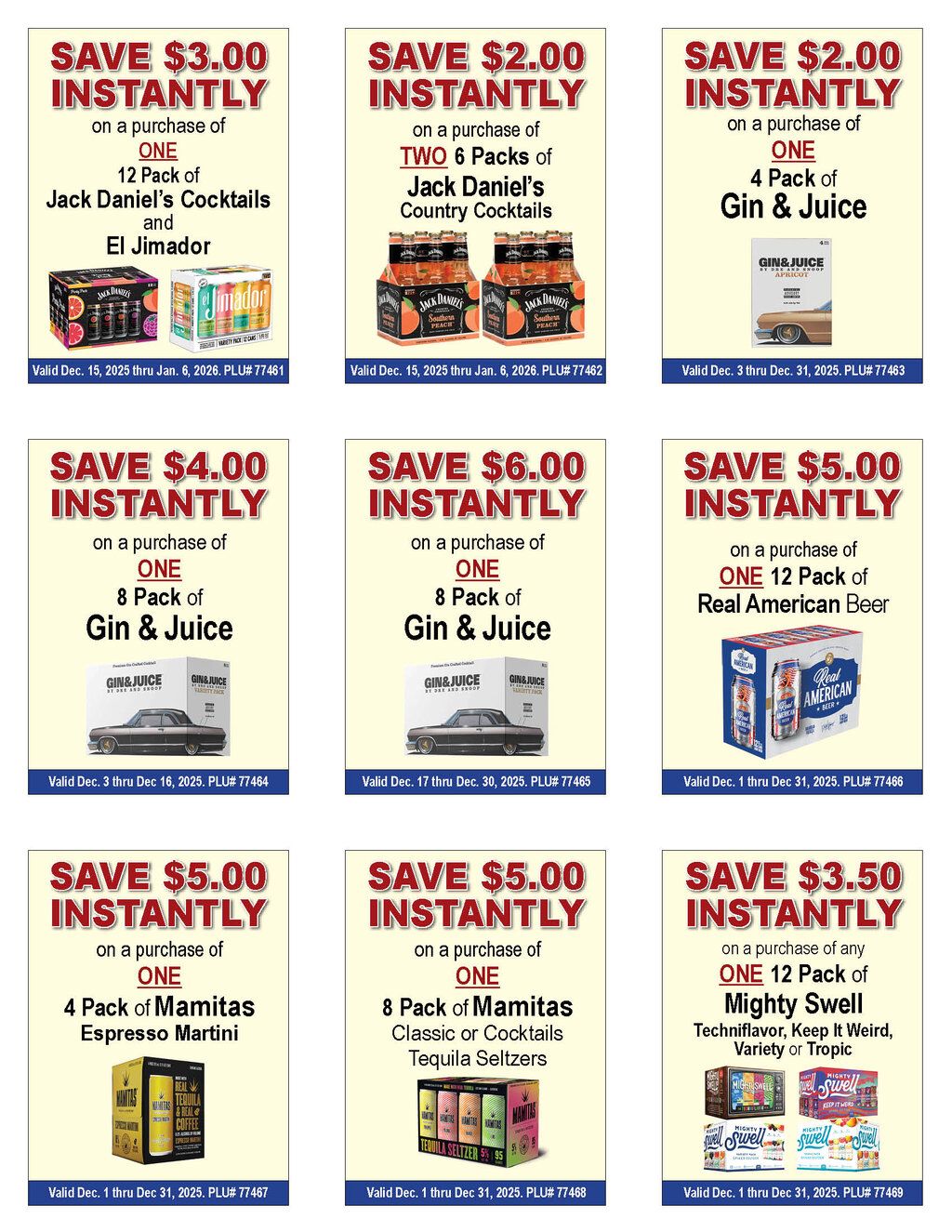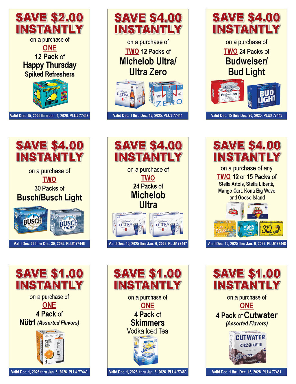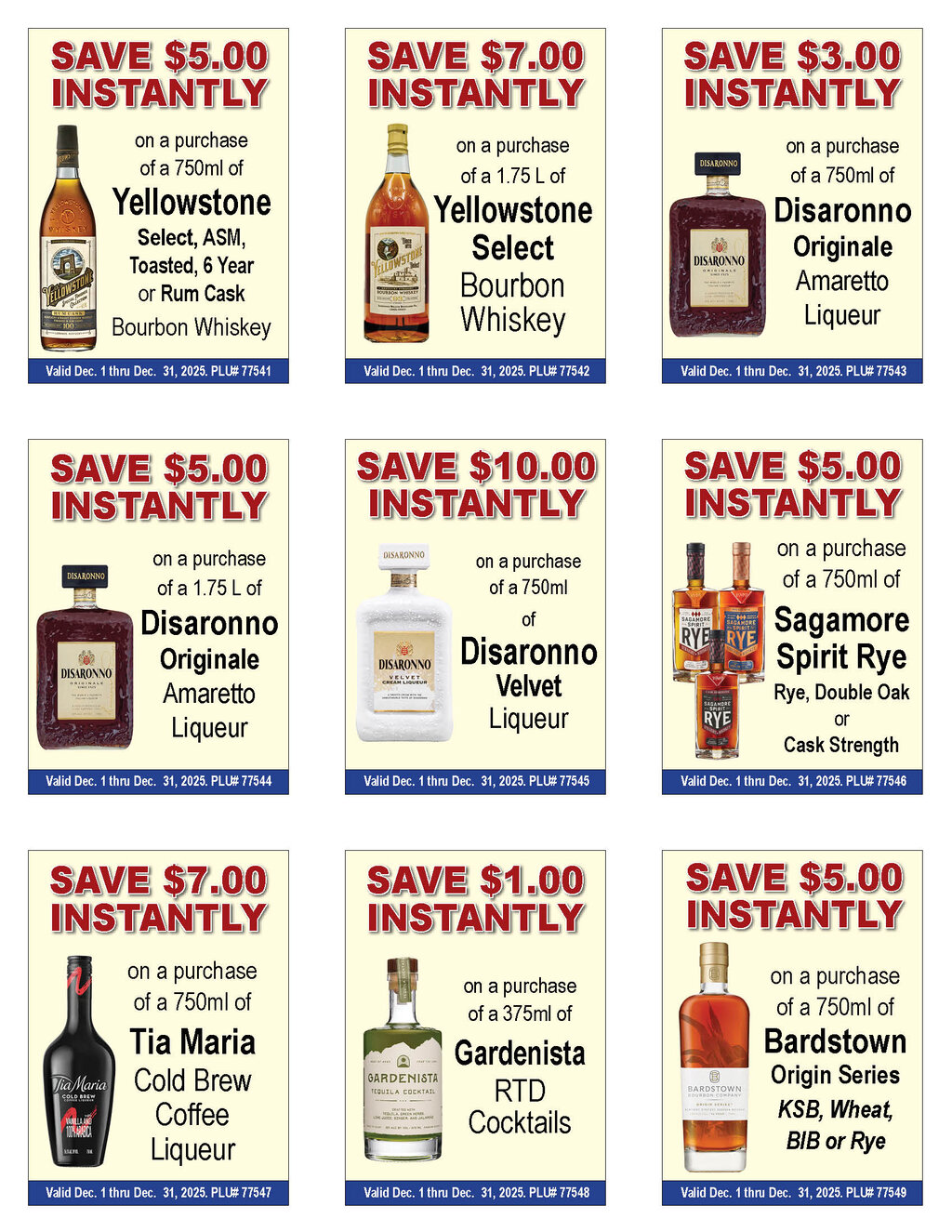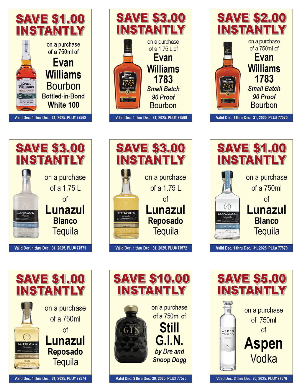 --See below for brand specifics and dates--